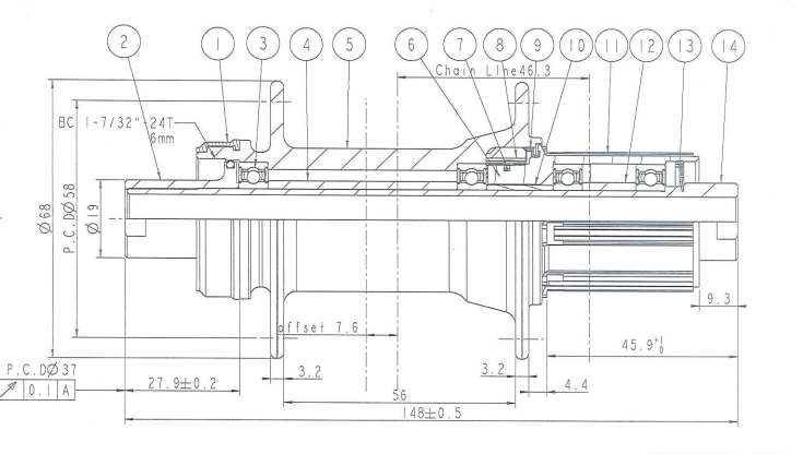 Zadný náboj D442SB-CL-B12-S4S-11S boost, zliatina, Centerlock, eloxovaná čierna, 32H/14G, os CrMo 12x148, bez loga, ložiská NBK, oceľový voľnobežník, podložka 11 B2-type, s 9-rýchlostnou 1,5mm podložkou, typ B2, D:45,9 R=L, bez pevnej osky, OEM (CN)